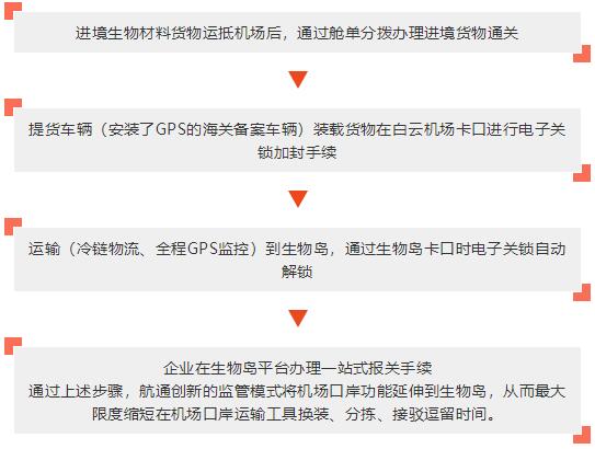 整合平臺(tái)運(yùn)營(yíng)和冷鏈物流溫控系統(tǒng),開(kāi)發(fā)生物島監(jiān)管輔助系統(tǒng)對(duì)接空運(yùn)智能化監(jiān)管系統(tǒng)、海關(guān)艙單管理系統(tǒng),可實(shí)現(xiàn)全過(guò)程電子化監(jiān)管、分類(lèi)監(jiān)管和產(chǎn)品可追溯后續(xù)監(jiān)管等功能,促進(jìn)實(shí)物流、信息流、資金流三流合一。