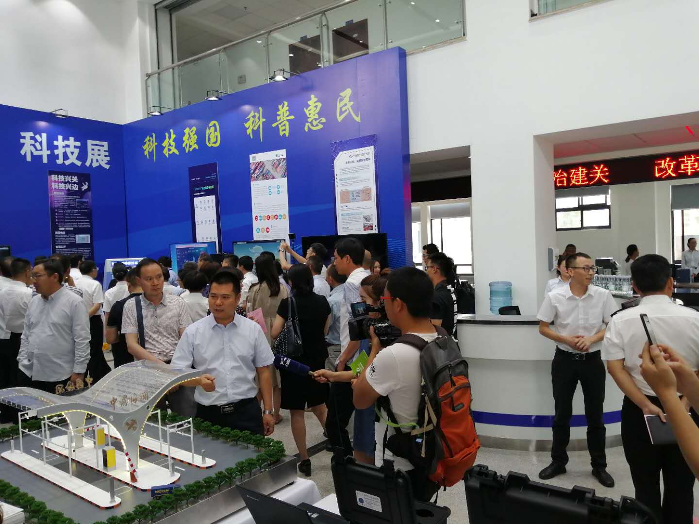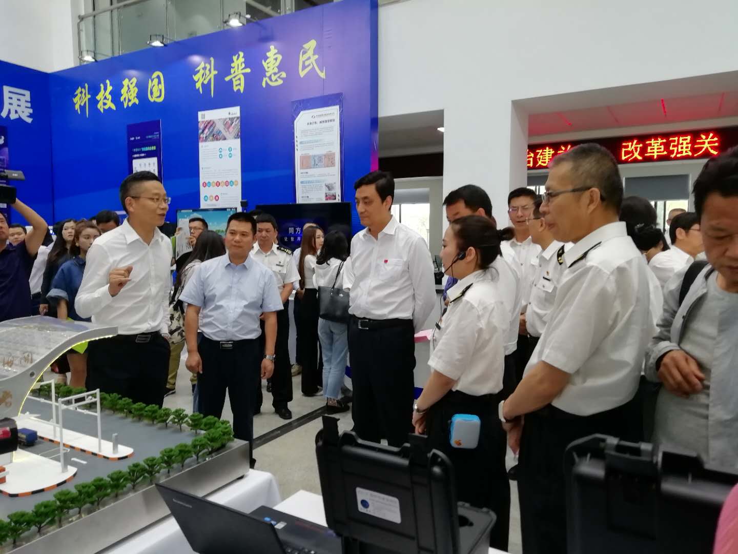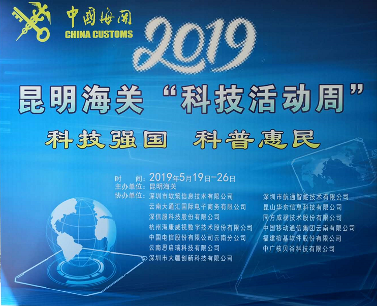 2019昆明海關“科技活動周”科技展于5月20日至5月26日在昆明海關一樓大廳正式開啟。本次活動周圍繞“科技強國、科普惠民”的主題,通過展板、展臺、體驗式交互等方式,對科技創(chuàng)新助力云南口岸通關便利化的發(fā)展歷程、重大成果以及未來規(guī)劃進行了展示?;顒蝇F(xiàn)場航通展出了所開發(fā)的云卡口系統(tǒng)等智能化軟硬件設備、全景業(yè)務監(jiān)測平臺、跨境電商解決方案以及邊民互市貿易申報系統(tǒng)等全套解決方案。